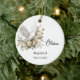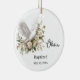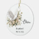 Dieses Keramik-Ornament wird mit einem schönen Blumendruck und Taubendruck und einem individuelle Name und Datum ihrer Taufe gezeigt. Die Rückseite hat eine Schrift. Passen Sie dieses Element an, und ändern Sie den Beispieltext in Ihren Text. Lizenziertes Bild