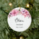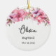 Dieses Keramik-Ornament wird mit einem schönen Blumendruck und einem individuelle Name und Datum ihrer Taufe gezeigt. Die Rückseite hat eine Schrift. Passen Sie dieses Element an, und ändern Sie den Beispieltext in Ihren Text. Lizenziertes Bild