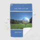 Anpassen von Text auf Golf Drive Handtuch. Design zeigt den Golfball auf Tee mit 3 Bereichen, um Text anzupassen oder Beispieltext zu löschen.