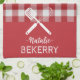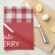 Custom text Trendy classic tartan red white match Geschirrtuch