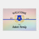 Custom Thin Blue Line Polizei Abzeichen Willkommen Doormat. Großes polizeiliches Abzeichen und dünne blaue Linie für diese lustige Begrüßungstat.