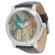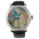 Uhr, Vintage Männeruhr mit schwarzem Lederarmband