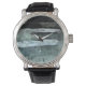 Uhr, Vintage Männeruhr mit schwarzem Lederarmband