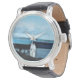 Uhr, Vintage Männeruhr mit schwarzem Lederarmband