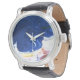 Uhr, Vintage Männeruhr mit schwarzem Lederarmband