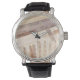 Uhr, Vintage Männeruhr mit schwarzem Lederarmband