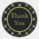Ein individueller Dankeschön-Aufkleber mit goldenen Buchstaben auf schwarz und ein einfaches kleines Kreuz-Muster in Golden auf schwarz. Passen Sie es an, um Schriftart, Hintergrundfarbe, Text und vieles mehr zu ändern, sogar das Design für später retten.