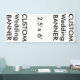 Maßgeschneiderter Banner 2.5' x 6', ein farbenfroher, durchsichtiger Vollfarbendruck, die Kanten werden gebrannt und anschließend thermisch geschweißt, um eine saubere und gepflegte Oberfläche zu erhalten. Erhältlich im Innen-, Außen- und Außenbereich mit Metallkräutern. Optionen in 4 Größen. Custom WEDDING Central - Erstellen, MACHEN, gestalten Sie Ihre eigenen CUSTOM WEDDING EMPFANG BANNERS aus einem vollständig KUNSTBAR, PERSONALISIERTE Design-TEMPLATE BLANK.