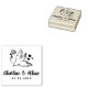 Eine charmante personalisierte Gummi-Briefmarke mit einer anmutigen Taube, die eine Blume mit zarten Herzdetails trägt. Ideal um Hochzeitseinladungen, Umschläge, Favoriten, Dankeschön-Karten und vieles mehr eine romantische und sinnvolle Touch hinzuzufügen. Passen Sie Ihren Namen und Ihr Datum an, um einen einzigartigen Sake für Ihren besonderen Tag zu erstellen.