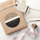 Grosser, runder Hochzeitsticker in Schwarz und Safari Leoparden. Passen Sie diesen Aufkleber mit Ihren Namen und Datum an. Börsenbild freepik.com