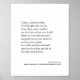 Unser Custom Wedding Vow Poster bietet eine einzigartige und sentimentale Möglichkeit, die an Ihrem Hochzeitstag ausgetauschten Gelübde zu verewigen. Dieses minimalistische Design konzentriert sich auf den Power und die Emotion der Worte, die die Verbindung zwischen zwei Individuen repräsentieren. Die Gelübde sind in einem schlichten, eleganten Schriftart gehalten, der das Auge zeichne und die Tiefe der Versprechungen ermöglicht, bei jedem, der sie liest, zu reflektieren. Das Design ist sauber und ungestört, um sicherzustellen, dass die Gelübde der zentrale Schwerpunkt des Stückes bleiben. Am unteren Ende des Posters befindet sich eine individuell anpassbare Widmungszeile, in der Namen und ein bedeutendes Datum, wie z.B. ein Jubiläum, hinzugefügt werden können, sodass jedes Poster zu einem einzigartigen Stück wird, das für die Reise jedes einzelnen Paares spezifisch ist. Dieses Poster ist eine schöne Hommage an die Liebe, das Engagement und die Partnerschaft, die die Ehe verkörpert. Es dient als tägliche Erinnerung der gemachten Zusagen und ist ein perfekter Weg, um ein Stück Ihres Hochzeitstages in Ihren Alltag zu bringen. Dieses Poster ist ein Zeugnis der geteilten Liebe und der Zukunft, die erwartet, ob es im Wohnbereich sichtbar oder in einem privaten Raum behalten wird. Das Custom Wedding Vow Poster wurde für diejenigen konzipiert, die die Wörter lieben, die sie miteinander verbunden haben, und ist ein intimes Kunstwerk, das die einzigartigen Gelübde feiert, die jede Ehe besonders machen. Es ist ein ideales Geschenk für Jubiläen, Geliebte Erneuerungen, oder als Hochzeitsgeschenk an das glückliche Paar, um dem Tag zu gedenken, an dem sie "Ich tue" sagten, in einer Weise, die so lange wie ihre Liebe andauern wird.