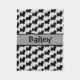 Diese individuelle Fleecedecke ist mit einer Silhouette eines Westie-Hundes ausgestattet, der im Hintergrund gefliest ist und einen Namen in der Mitte trägt, ideal für einen Westie-Hund oder seinen Besitzer.