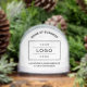 A clean, classic look for your brand — this custom business snow globe features your company name arched above a logo placeholder on a crisp white background, with space for your location, slogan, or website. Front and back both showcase your branding for maximum visibility. Upload your logo in any color or shape and customize every text field. An elegant promotional gift for employees, clients, and corporate events.