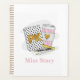 Dieser Vorschullehrer-Planer behalte Ihre Unterrichtspläne an einem Ort. Das Muster hat ein weißes Notizbuch mit schwarzen Polka-Punkten, einem goldenen PK, Herzkaffee, Lineal, Stift und Bleistift. Dieses weiße Notebook mit schwarzen Polka-Punkte-Design kann auf anderen Artikeln in meinem Shop gefunden werden, PageCreativeDesigns.