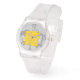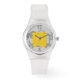 Anpassbare gelbe Ideogramm des Schweins auf einem niedlichen Original zeichnend als Hintergrund. Sie können das Jahr und die Farbe des Ideogramms ganz einfach ändern, indem Sie auf die Schaltfläche Anpassen klicken. Design auf Silicone Strap Clear Uhr mit jungen Stilnummern. Ideal für Chinesisches Neujahr des Schweins oder Geburtstag (Menschen geboren im Schweinejahr).