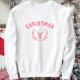 Feiern Sie den Weihnachtsurlaub mit diesem modernen Pullover, um ein Nicken auf die Uni varisity Stil. Mit "CHRISTMAS" in rosa Schrift und einer Grafik eines Rentiers. Einfach mit dem Jahr anpassen, um einen besonderen Sake für Freunde und Familie zu machen