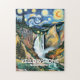 Towering pine forest cliffs, a swirling night sky, and the dramatic canyon waterfall view make this piece a stunning wilderness nature scene that celebrates the beauty of summer night landscapes. All text is fully editable, allowing you to personalize it with a name, trip date, or favorite travel quote.