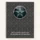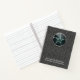 This notebook is industrial strength! Beautiful metal topped with a pentacle that shows all five elements; water, fire, earth, air and spirit on a lovely earthy green background. This pentacle will protect all the secrets, notes and spells that you write in it. Enjoy!