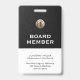 Elevate your board meetings with our Customizable Board Member Lanyard with Logo. Featuring a brushed gold logo and customizable text at the top, this lanyard is tailored for board members but is customizable for any role or business event. The rich black textured background enhances the design, while individual name, title, meeting event, and date in black typography offer clarity and sophistication. Make your board members stand out at meetings with this customized lanyard.