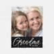 Celebrate being a grandma with this simple and modern “Grandma Est. [Year]” photo blanket. Featuring white typography, this design is perfect for new grandmas or seasoned grandmothers alike. Customize the year to mark when she first became a grandma — a sweet, personal touch that makes this photo blanket extra meaningful. Ideal for Grandparent's Day, Mother’s Day, baby showers, pregnancy announcements, or casual everyday use. This custom blanket is a thoughtful way to honor the year that changed everything.