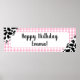 Customizable Happy Birthday Banner Pink Gingham Poster