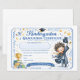 A soft, playful graduation certificate layout designed for personalization, complete with spaces for name, school, teacher, and date to honor this meaningful step forward.