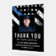 This design features a police force flag with black and white stripes, and a thin blue line stripe as well. This design is great for showing appreciation to an officer celebrating an anniversary or thanking a retiring law enforcement officer, sheriff, captain, or chief for their years of service. Customize even further with a photo of the retiring police officer.