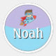 Customizable Round Name Sticker – Rocket Superhero Design for Kids & Babies | Personalized School & Daycare Label