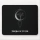 Upgrade your desk with this captivating black mouse pad featuring a mystical design: a silhouetted tree framed within a crescent moon, adorned with dotted circles, lunar phases, and geometric accents in elegant silver tones. The intricate artwork blends natural and celestial symbols, making it an inspiring statement piece for any workspace, desk, or creative station. This mouse pad combines eye-catching style with everyday functionality. Customize the text area with your name, mantra, or favorite magical phrase to make this piece uniquely your own—perfect for anyone seeking to infuse their workspace with a sense of modern mysticism and personal expression.