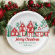 This cute custom real estate holiday paper plate is perfect for realty business marketing. Customize these Merry Christmas party plates with your company name under the red houses covered in winter snow and lined with festive green trees.