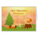 Eine niedliche Ansammlung der Waldtiere, zum jemand speziell eines glücklichen Erntedanks zu wünschen. Fügen Sie einen Namen oder ein Verhältnis zur Kartenfront für einen personalisierten Gruß hinzu. Die Szene kennzeichnet Eichhörnchen und ein Kaninchen, das auf dem grünen Gras mit einem orange und gelben Hintergrund sitzt.