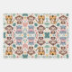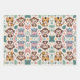 Cute animal pattern features monkeys, hippos, and tigers on a white background with colorful leaves and flowers, conveying a playful tone.