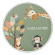 Add cheerful charm to any nursery, playroom, or child’s bedroom with this cute personalized safari animals ceramic knob. Featuring an adorable illustration of a friendly giraffe, a sweet little monkey, a curious woodland critter, and a bird in a colorful tree, this design brings a playful touch of nature-inspired whimsy to your child’s space. Customizable with your child’s name, it’s the perfect finishing detail for dressers, cabinets, and drawers, making furniture both fun and uniquely theirs. The soft sage-green background complements a variety of décor styles, from modern to rustic to woodland-themed rooms.