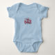 Das Baby Body Anzug Design zeichnet sich durch den Satz "Ich bin der niedlichste" in fett rosa Buchstaben mit spielerischem, handgeschriebenem Stil aus. Der Text ist umgeben von farbenprächtigen Herzen und Sternen, die das niedliche und fröhliche Ambiente noch verstärken. Das Gesamtbild ist einfach, aber auffällig.