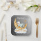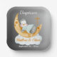 Eine Taufe / Christening Papier Teller mit einem Aquarell Cartoon Baby Pinguin schlafen auf einem Halbmond ruhen auf einer Wolke mit einem schwarz / grau (grau) Gradienten Hintergrund. Es ist ein fabelhaftes Tischaccessoire für ein Party, um die Taufe / Taufe Ihres Babys oder Mädchens oder Zwillinge zu feiern. Alle Texte können geändert werden. Personalisieren Sie die Taufe für die Weihnachtsfeier oder die heilige Kommunion, dann personalisieren Sie sie mit den Namen des Babys oder der Zwillinge und dem Datum.