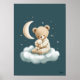 Cute Bear on Cloud Nursery Bedtime Wall Art Poster
