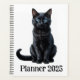Cute little black cat on white background planner.