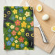 Cute Black Cats Floral Meadow Pattern Geschirrtuch