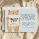 Remerciez vos proches de la façon la plus courtoise avec cette carte de faire-part bébé avec un ours de charme tenant un signe qui affiche le "Merci" avec le nom, le poids et la taille de votre bébé garçon. Le dos de la carte comprend un message de remerciement sincère, parfait pour partager votre gratitude pour les cadeaux et le soutien. Un design sucré avec un thème bleu clair, idéal pour célébrer votre petit bébé !