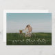 This modern save the date card features a simple, minimalist design that includes a photo covering the entire front of the card, paired with the phrase "save the date" styled in a whimsical handwritten script font connected with hearts, which lends a cute, modern touch to the design. The back of the card also includes a placeholder to indicate your wedding website URL.