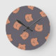 Cute Brown Teddy Bear Face Pattern Dark Blue Runde Wanduhr