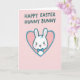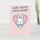 This card features a plump white rabbit character peeking up from a large heart near the lower middle, with a sweet, friendly expression 🐰. The rabbit’s rounded cheeks show a rosy blush, and its wide eyes and tiny tongue give it a teasing look, like it’s sharing a private joke with someone close. A small sky-blue bow tie sits under its chin, tying in with the teal outline of the heart. Inside the heart is a soft rosy pink fill dotted with small white polka dots, adding gentle texture. The background is a light pastel pink wash that keeps the scene soft and springlike 🌷. Across the upper area, chunky green text is placed in a loose, hand-drawn style, standing out clearly against the pink backdrop. The teal heart outline frames the rabbit’s face and ears, with the polka-dotted pink interior tucked neatly behind it.