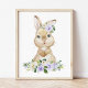 Cute Bunny, Rabbit, Purple Flowers, Gender Neutral Poster