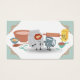 Les personnages des ingrédients de cuisson mignons avec la farine et la pâte, beurre et ustensiles de cuisine sur ce carte de visite de boulangerie pour votre entreprise de boulangerie à domicile.