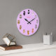 Cute cartoon cats on pinkish violet Wall Clock. Cats are like cations! Cation text can be personalized.