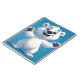 A cheerful, cute cartoon polar bear character on a clean blue background, ideal for children's projects, mascots, packaging, posters and winter or Arctic themed designs.