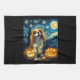 Cute Cavalier King Charles Spaniel Dog Halloween Jack O Lantern Pumpkin Face Starry Night Van Gogh Style
