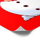 A cute Christmas snowman who is kind of chubby and jolly wearing a striped scarf and a red christmas hat. Festive and fun.