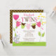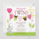 Commencez votre baby shower jumeau directement avec nos lignes de vêtements pour bébé lignes baby shower invitation pour les filles jumelles à la naissance. Notre invitation à baby shower multiple pour les jumelles comporte un mignon lapin assis sur une pelouse avec des fleurs roses et jaunes avec deux lignes de tissu avec des costumes de bébé rose, vert citron et marron. Coordonner les pois bruns et verts citron. Visitez notre boutique pour obtenir les cartes de remerciement, les autocollants et les timbres-poste Les maillots de bain sont © Erin Bradley Designs
