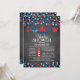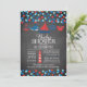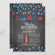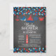 Baby shower nautique confetti moderne pour bébé garçon. Notre invitation de baby showers garçons contemporain et amusant dispose de confettis rouge & bleu audacieux et brillant sur un arrière - plan populaire de tableau de bord avec un voilier rouge & bleu, baleine, roue de navire, ancre & crabe et un phare.